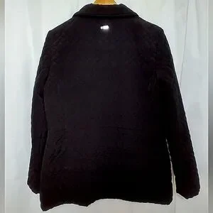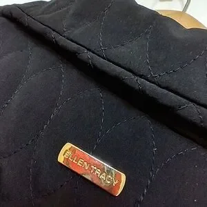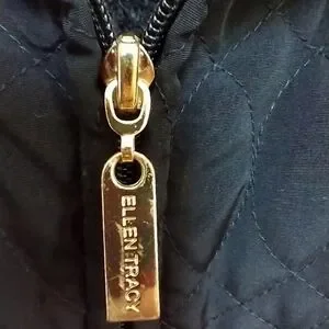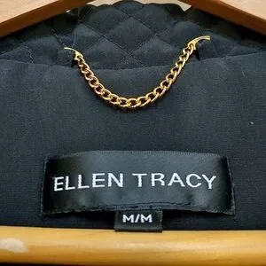 Excellent Used Condition Ellen Tracy Quilted Anorak Plush Lined Black Jacket Size Medium. Features Gold logo zipper pulls and soft plush lining. The only thing wrong is the cinch cord at the waist is missing. Approx measurements: Bust 21", Sleeve 24", Length 28".