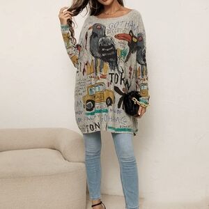 COEUR DE VAGUE Cartoon Oversized Sweater