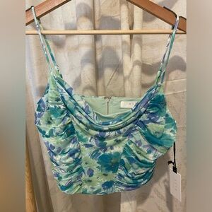 Tippi Cowl Neck Floral Top Blue Teal Floral