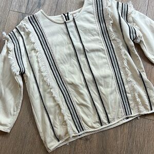 Anthropologie Eri & Ali Top Fringe Trim Black Cream Blouse Women Size Medium
