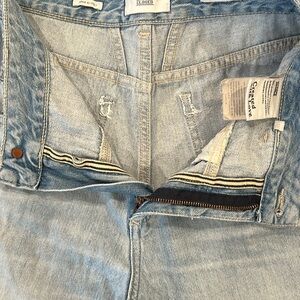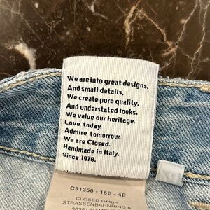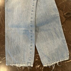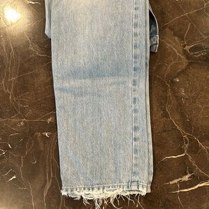 High Waisted straight leg Jean . Frayed hem. Hand made in Italy. Fantastic Jean . Light wash. Leg opening is 7 1\4 inches. Runs true to size