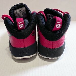 Nike Team Hustle D9 Basketball sneakers. Red & black. Youth size 4. In good pre-owned condition. Please see photos for condition. Still lots of life left. The round Team Hustle basketball logo has peeled off of the tongues. Smoke free home.