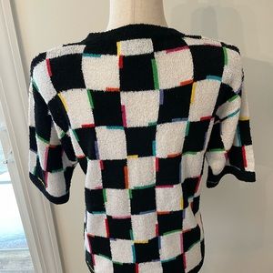 Vintage Grandma Checkerboard Colorful Sweater in size Small. In great used vintage condition, with faint mark at front, shown in pictures. Comes from a smoke-free, cat-friendly home. Measurements are included in pictures. Please inspect pictures closely and let me know if you have any questions!