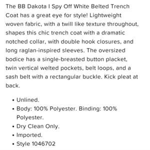 For Kitty Rescue! BB Dakota I Spy Off-White Trench Coat