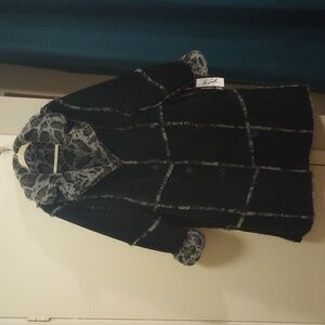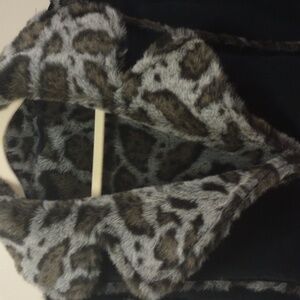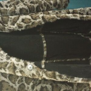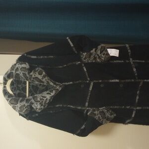 New with tag. Black genuine suede leather with faux fur. Button front with pockets. Completely reversible. Size 2X approx measurements pit to pit 28 inches and length 45 inches.