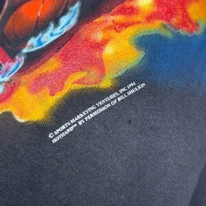 Hot Hands brand graphic basketball in flames crew neck sweatshirt with some markings, cracks on graphics and pin holes.