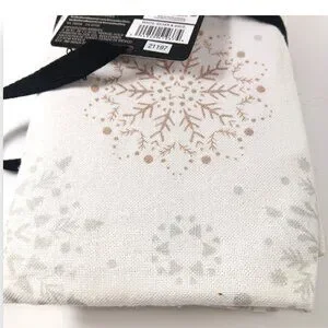 PATTERN/COLOR- White material with Gold & Silver Snowflakes.