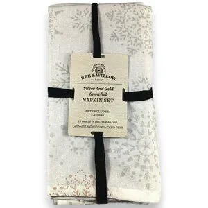Bee & Willow-Silver& Gold Snowfall- Napkins- 18"x18"- Holiday- White