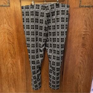 Maze Collection pull-on slim fit pants, black and white checkered pattern, size 3X. Soft, stretchy, comfy pants with an elastic waistband. Dressy leggings perfect for both in and out of the office.