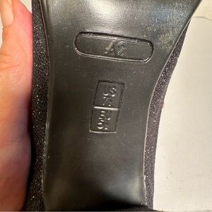 AA2 by Aerosoles Black Glitter Heels Sz 7.5 Womens Sparkle Dress Open Toe Slip-O