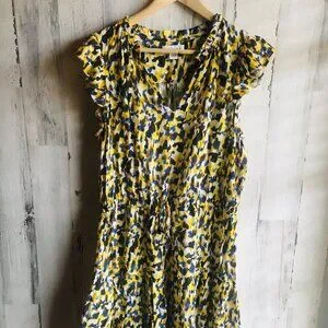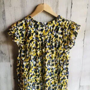 NWOT Velvet by Graham & Spencer Dress Flutter Cap Sleeve Abstract Print Yellow L