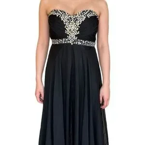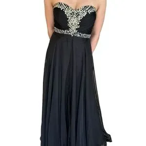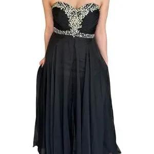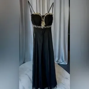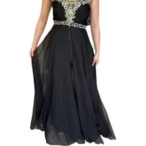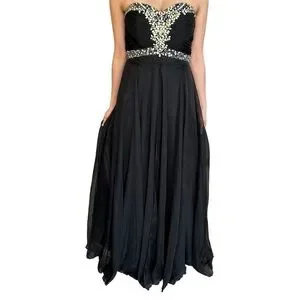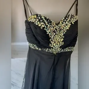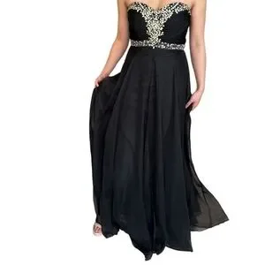 ✨Host Pick✨ BLACK CHIFFON PROM FORMAL EVENING GOWN WITH RHINESTONE ACCENTS 4