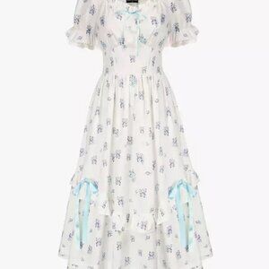 NEW Scarlet Darkness Blue Floral Women Ruffled Tiered Dress M