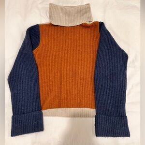 Autumn Cashmere Turtleneck Color Block Cuffed Knit Sweater