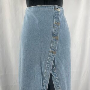 Edit by nine button down denim midi skirt high slit, medium, stretch denim,NWT