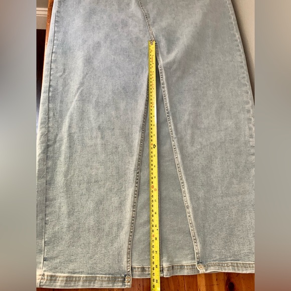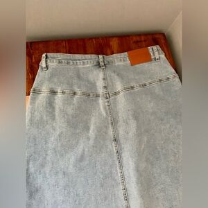 Denim, Jean Skirt, Maxi Skirt, Slit Skirt, Sexy, Jean on Jean, Light Wash, Minimalist, Trendy, Modern, Contemporary, New