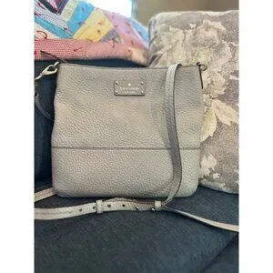 Carry your essentials and look fabulous doing it. This Kate Spade crossbody bag comes in a chic gray leather with a fun polka dot lining.