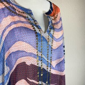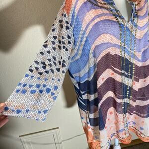 Chicos Whimsy Waves Violet Top Sz 3 XL Sheer Multicolor Artsy Flowy sequins
