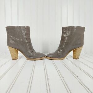 New Marc By Marc Jacobs Grey Textured Leather Block Heel Ankle Boots K135