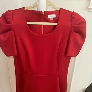 Red Calvin Klein dress with puff sleeves