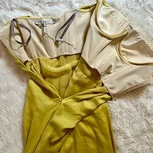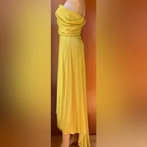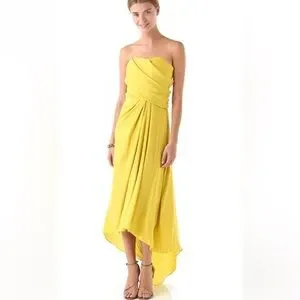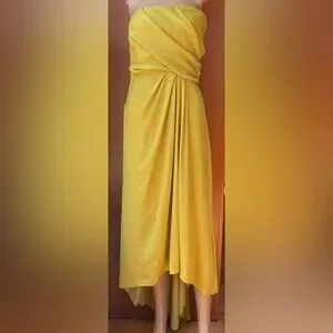 HALSTON HERITAGE NWOT Strapless Draped Yellow Gown Size 2