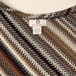 Big Buddha Women's 100% Acrylic Brown Gray Black White Stripe Shawl Poncho OS