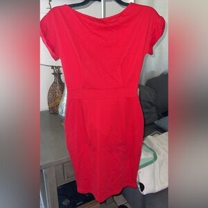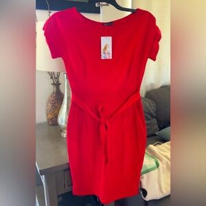 Stretchy and comfortable red dress! Material is not heavy, has pockets and belt to tie for style. Cute to wear with sandles or comfort shoes