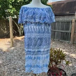 New, elastic neckline, off the shoulder, knee length, soft, flowy, beach wear, pool cover up, travel, vacation, cruise