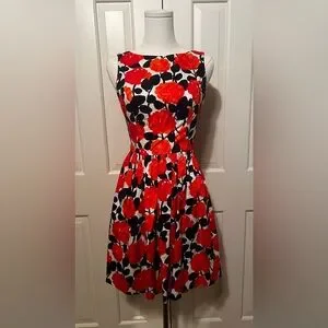 Shoshanna floral cotton blend dress. Fitted bodice with pleated knee length skirt. Has pockets and zipper at the base of the low v shaped back. Size 2. Excellent condition. Will steam before shipping