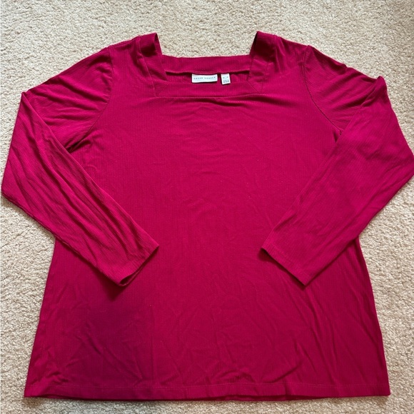 Susan Graver Rib Knit Square Neck Long-Sleeve Top XL Raspberry Rose A387826