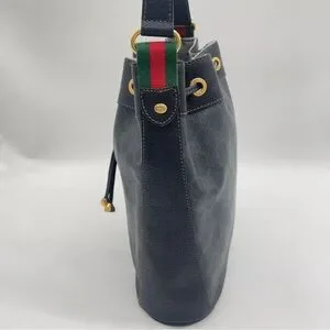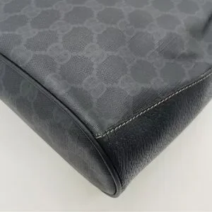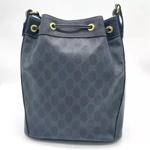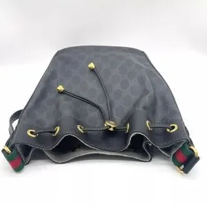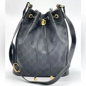 Auth WEEKEND DEAL GUCCI GG Sherry Line PVC Leather Black Drawstring Shoulder Bag