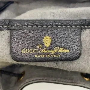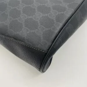 Authentic GUCCI GG Sherry Line PVC Leather Black Drawstring Shoulder Bag