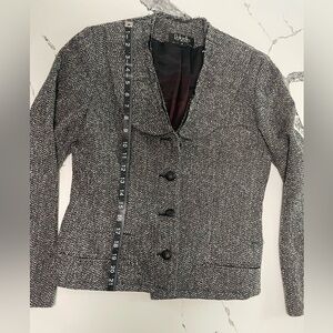 The raw edge detail, cut of the collar, and leather covered buttons give some edge to what would otherwise be a very traditional piece. Looks so cute with jeans and a simple black top. This one is hard to part with but I have to accept that I’ll never be a size 4 again 😭 so I’m happy to send her to a new home. Excellent used condition. Reasonable offers always considered.