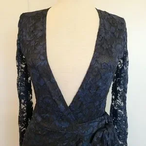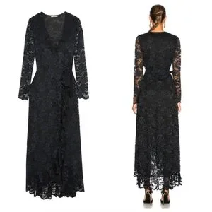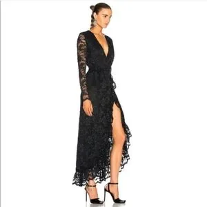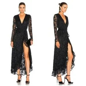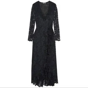 GANNI Flynn Lace V neck Wrap Ruffle and Lace Dress