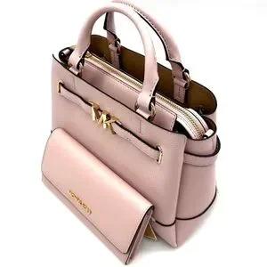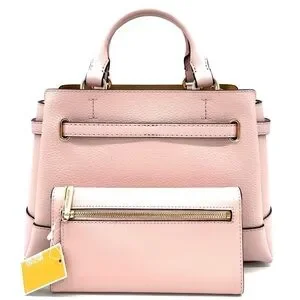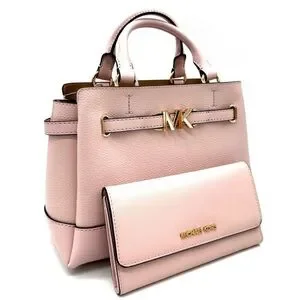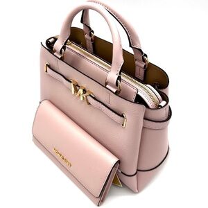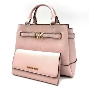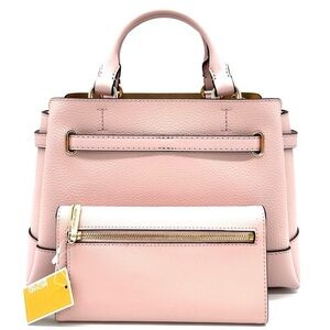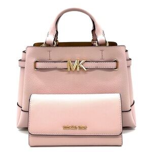 Michael Kors Reed Small Satchel Crossbody Bag & Large Trifold Wallet Light Pink