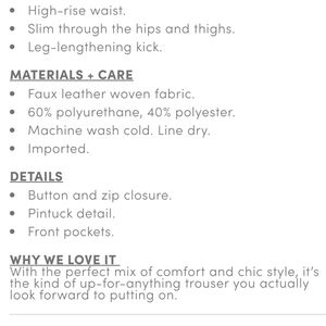 TORRID Pintuck Trouser Boot Faux Leather High Rise Pant Size 18 Regular NEW!