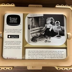 American girl Mary Ellen's TV console. Comes with all the original pieces including the information to watch tv using an iPad. Is retired and not able to purchase in store.