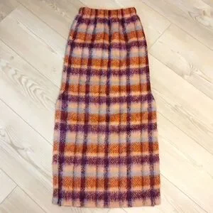 Loeil Kahlo limited edition plaid maxi sweater skirt. Knit 100% alpaca wool, 2 side slits, excellent condition. Size is M/L. First photo is stock, others are the actual item being sold.