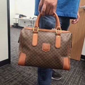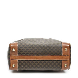 Celine Handbag Small Boston in Brown Macadam Coated Canvas and Gold hardware. The product is in Very Good Condition (AB).