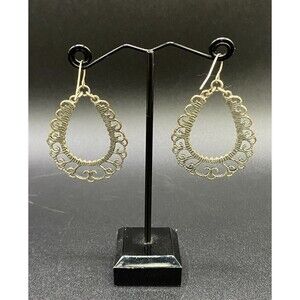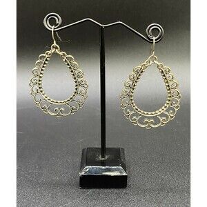 Silver Plated Filigree Inspired Teardrop Hoop Earrings