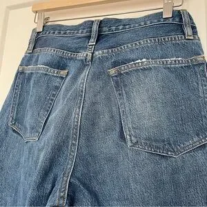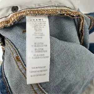 This is a really fun pair of Frame boyfriend jeans in a patchwork design. Great small details like the back pockets that look like they were removed and stitched back on.