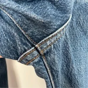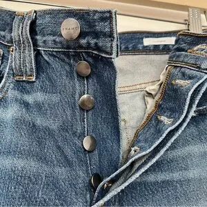 I purchased this secondhand but it doesn’t match my closet so I’m letting it go, I hope, to a better home. It’s in great condition; No stains, rips or flaws that I can see. Button fly. I find it true to size. The denim feels fairly rigid, but comfortable.