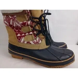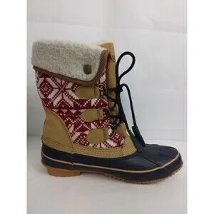 KHOMBU MAYA Suede Lace Up Faux Fur Lined Winter Duck Boots Brown Womens Size 8 M