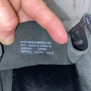 0905 Clark’s Originals Wallabee Leather Shoes, Black, Size 14M.