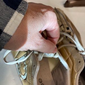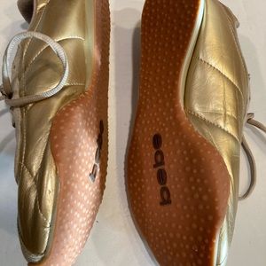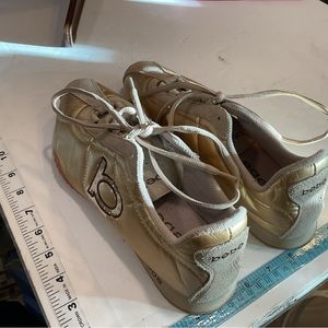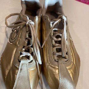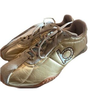 Bebe Sport Womens 9.5 Sneakers Gold Leather W/ suede Details & Rhinestones on B