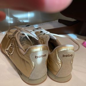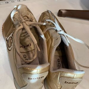 Bebe Sport Womens 9.5 Sneakers Gold Leather W/ suede Details & Rhinestones on B Bebe Sport Womens 9.5 Sneakers Gold Leather W/ suede Details & Rhinestones on B NWOT