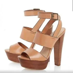 Steve Madden Dezzzy Tan Leather Platform Heels
