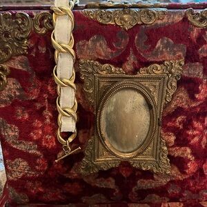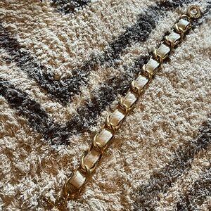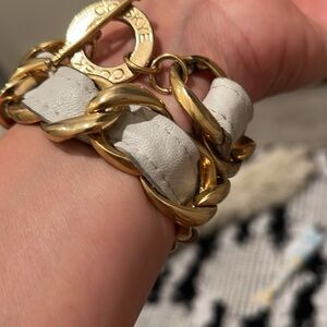 CC Skye Gold & White Chain Link Leather Choker &/or bracelet Y2K