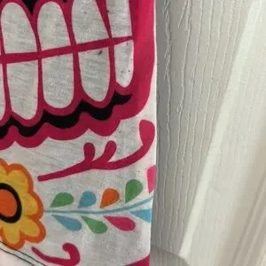 Size small. Nightgown material. Good for 5-6 year olds. Pre owned good condition. Very small piling towards bottom. 95% polyester 5% spandex. Smoke and pet free home. From the Mexico Pavillion in Epcot.25in length