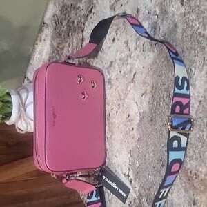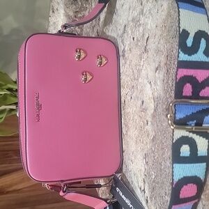 KARL LAGERFELD NWT PARIS GRAPHIC LOGO STRAP CROSSBODY BAG ROSE HEARTS